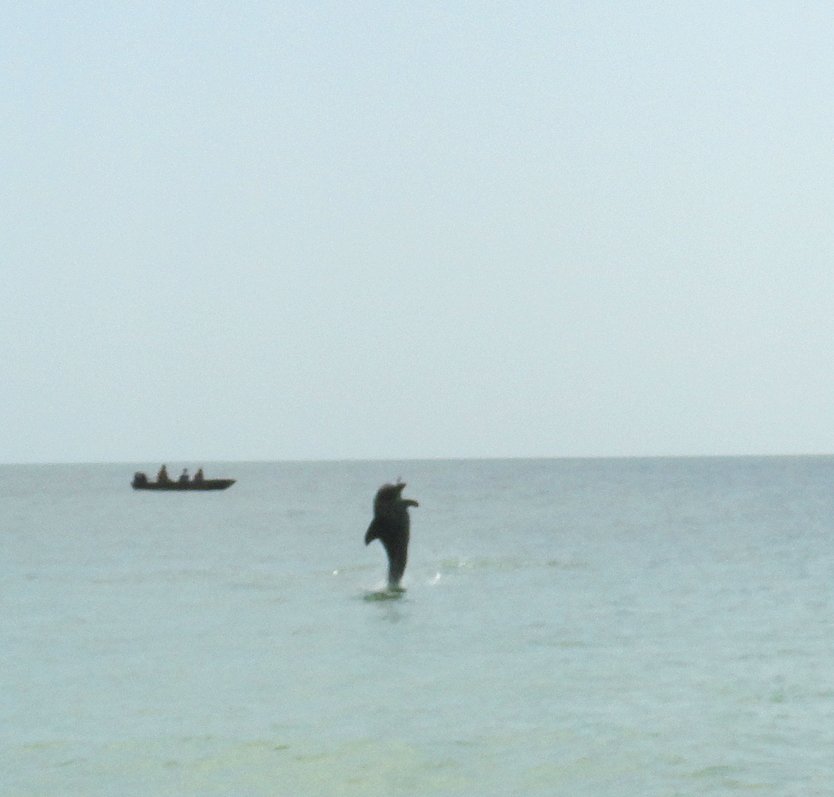 We see dolphins at the beach every year we come and sometimes they get VERY close. Yesterday I captured three dolphin with my camera and even got a shot of one jumping completely out of the water. Very cool!